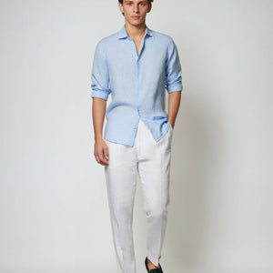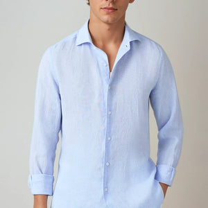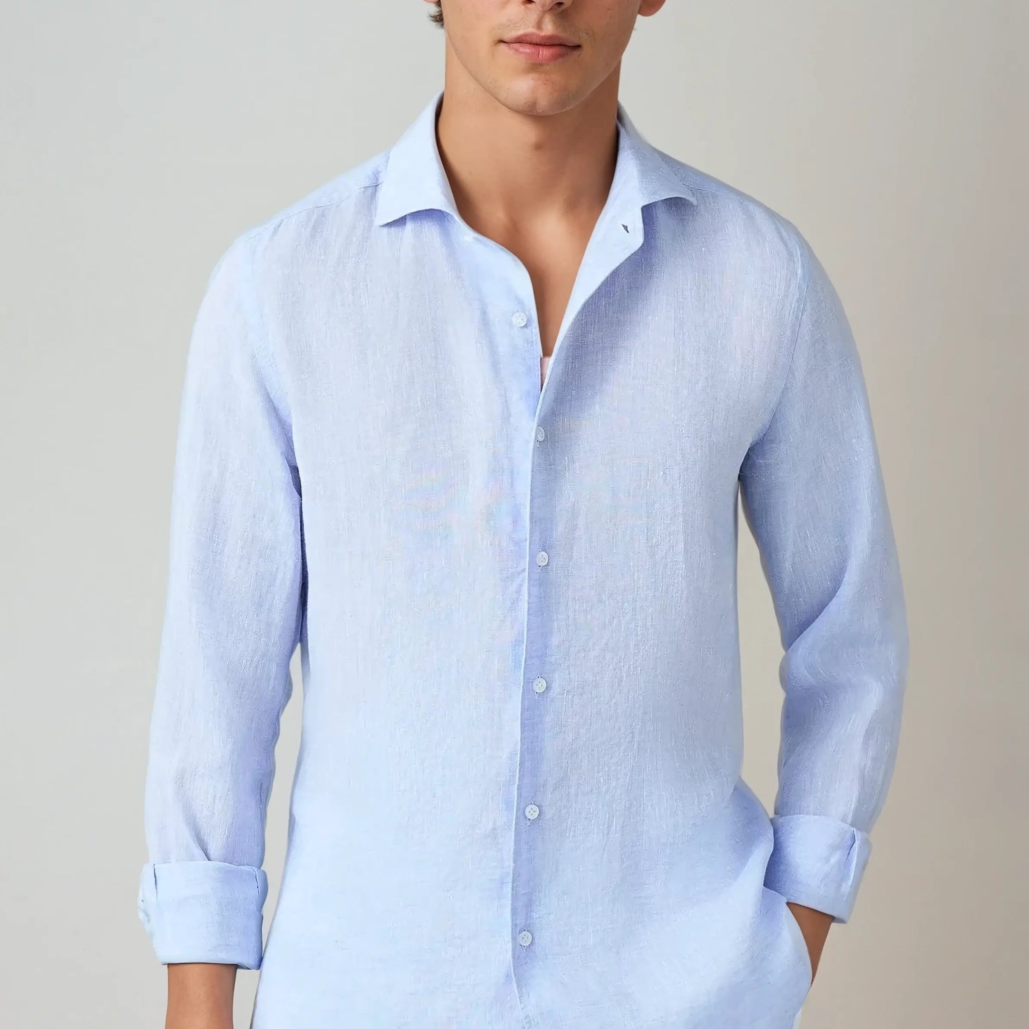 Ervaar de perfecte combinatie van stijl en comfort met dit lichtblauwe linnen overhemd voor heren. Het Grand Arbre linnen overhemd is ontworpen om de hele dag zijn vorm te behouden en is gemaakt van 100% langvezelig linnen, wat zorgt voor ademend vermogen en antibacteriële eigenschappen. Of je nu op je werk bent, uit lunchen of dineren aan zee, dit overhemd zorgt ervoor dat je er van 's ochtends vroeg tot 's avonds laat verzorgd uitziet.