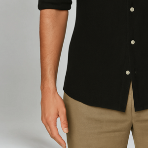 Het linnen overhemd in diepzwart is het perfecte overhemd voor mannen die er de hele dag stijlvol en verzorgd uit willen zien. Dit overhemd is gemaakt van 100% langvezelig linnen, wat zorgt voor een ademende en antibacteriële ervaring die urenlang zijn vorm behoudt.