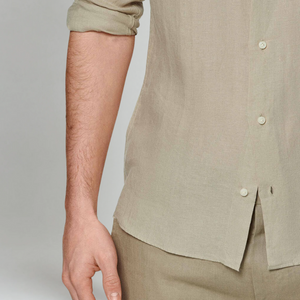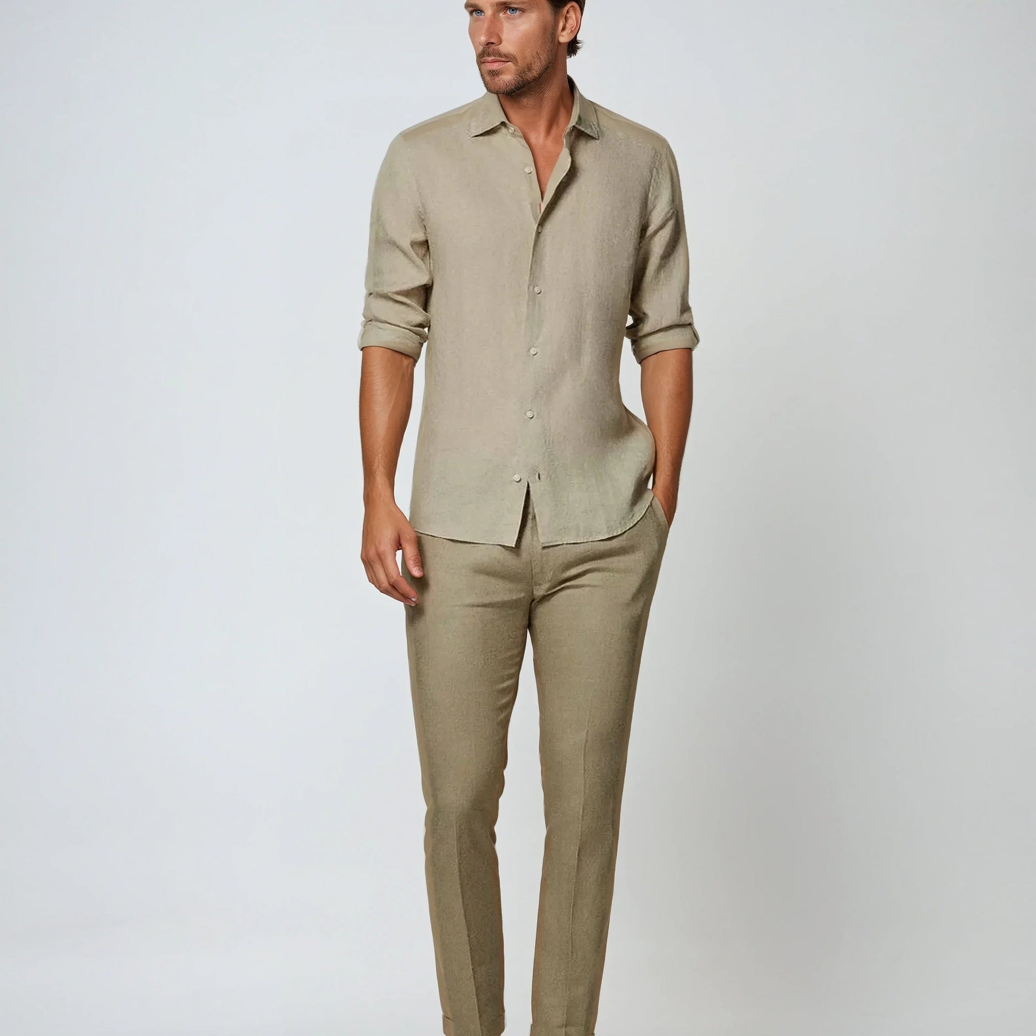 Het linnen overhemd in kaki is de perfecte oplossing voor mannen die er de hele dag verzorgd uit willen zien. Dit overhemd is gemaakt van 100% langvezelig linnen, wat zorgt voor een ademende en antibacteriële ervaring die zijn vorm behoudt, zelfs na urenlang dragen.