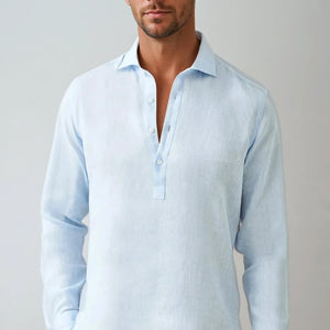 Zomer linnen Pop-over overhemd – Lichtblauw